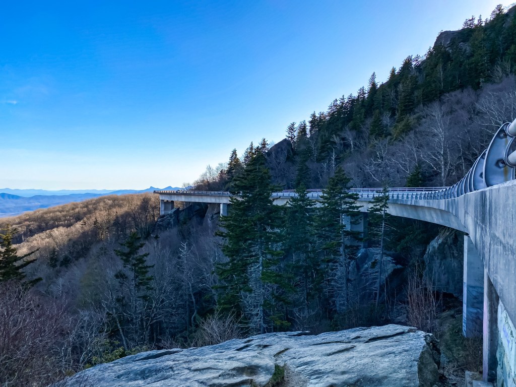 The Linn Cove Viaduct is not a hike, but merely a marvel as the Blue Ridge Parkway hugs Grandfather Mountain and traverses some of Western North Carolina’s most rugged terrain. Located in between Blowing Rock and Newland along the Blue Ridge Parkway, you will not want to miss this sight. It sits at 4,100 feet above sea level and was one of the last pieces built to complete the roadway. You can stop just before and walk along the side of the road to get a picture of it in its full glory.
