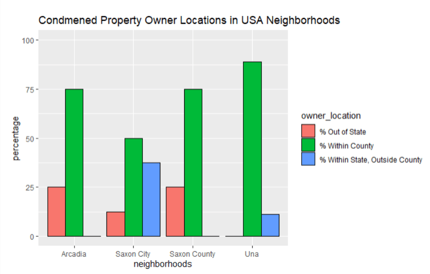 - Saxon City has the highest rate (3 condemned parcels per 100), followed by Saxon County (1.8/100) and South Converse (1.63/100).